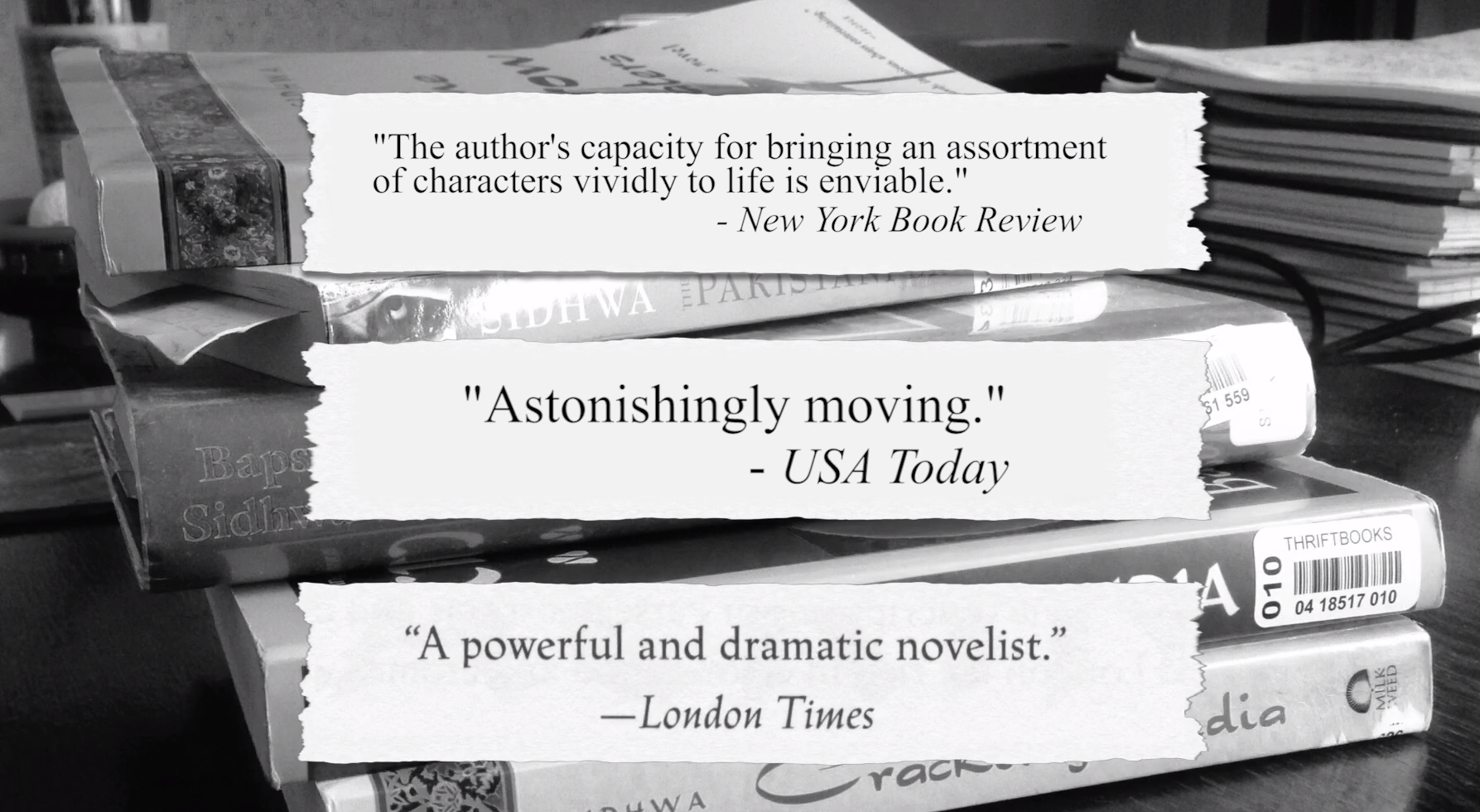 Among her many honors Sidhwa received the Bunting Fellowship at Radcliffe/Harvard, the Lila Wallace-Reader’s Digest Writer’s Award, the Sitara-i-Imtiaz, Pakistans’ highest honor in the arts, and the LiBeraturepreis in Germany and the 2007 Primo Mondello Award in Italy.